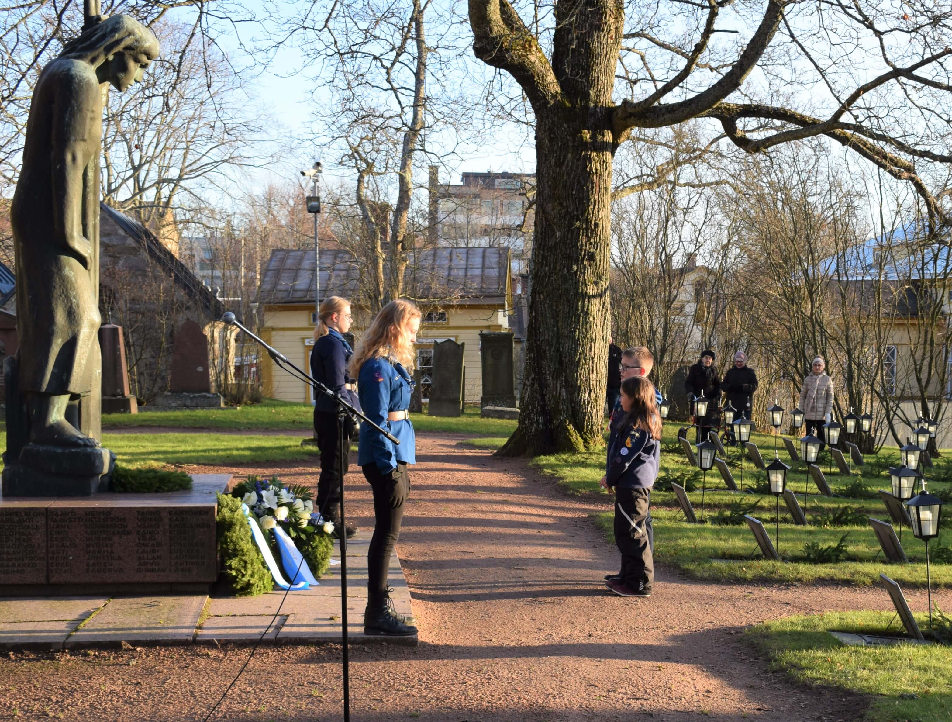 Uudenkaupungin Laulu-Veikkojen osallistumiset Itsenäisyyspäivän tilaisuuksiin alkoivat Uudenkaupungin Sankarihaudalla seppeleenlaskutilaisuuteen.